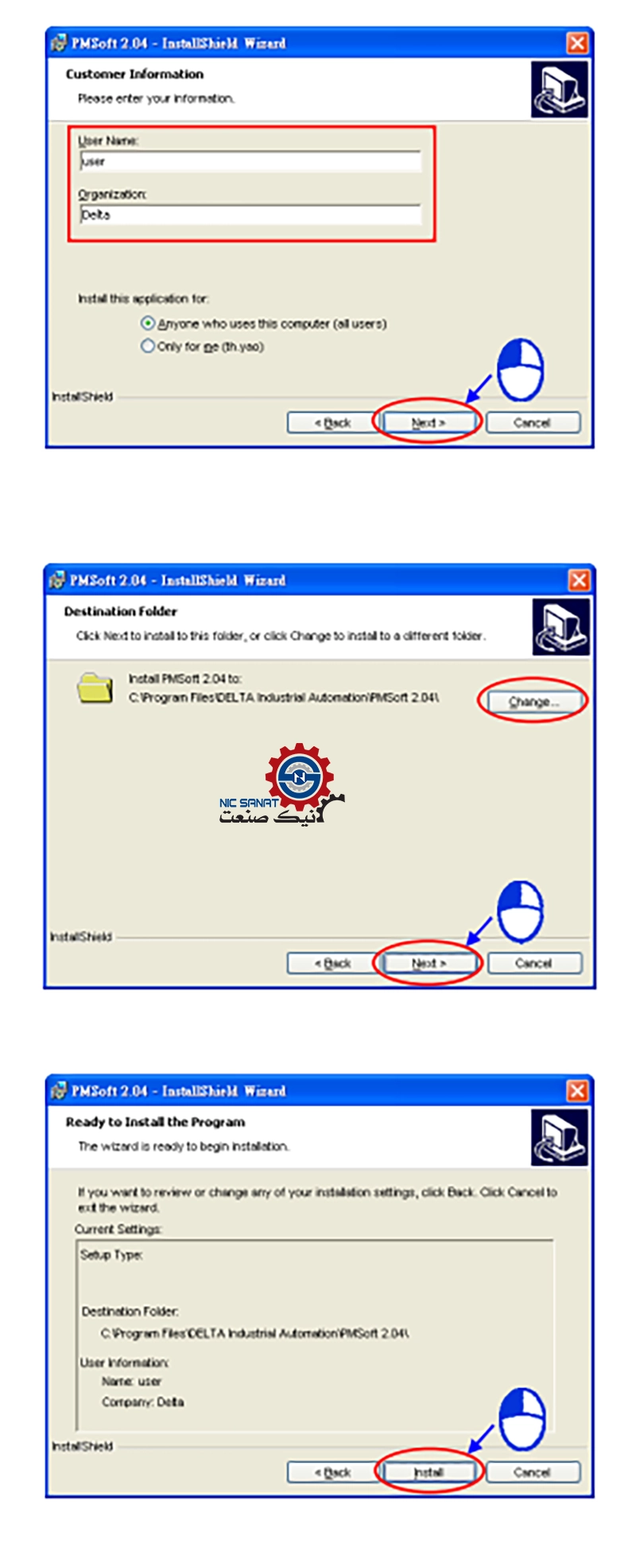 برای نصب، فایل فشرده PMSoft را از حالت ZIP خارج کرده و فایل Setup را اجرا کن. در مرحله نصب، گزینه ی نصب Communication Drivers را فعال نگه دار تا نرم افزار بتواند کنترلر را شناسایی کند.پس از نصب، از منوی Project Wizard نوع کنترلر (AH یا DVP) و تعداد محورهای حرکتی را انتخاب کن.اگر در شروع کار با سیستم های موشن دلتا تازه کار هستی، پیشنهاد میشود در دوره آموزش موشن کنترل دلتا شرکت کنی تا با مفاهیمی مثل تنظیم PID، هماهنگی چند محوره و پروفایل های حرکتی آشنا شوی.