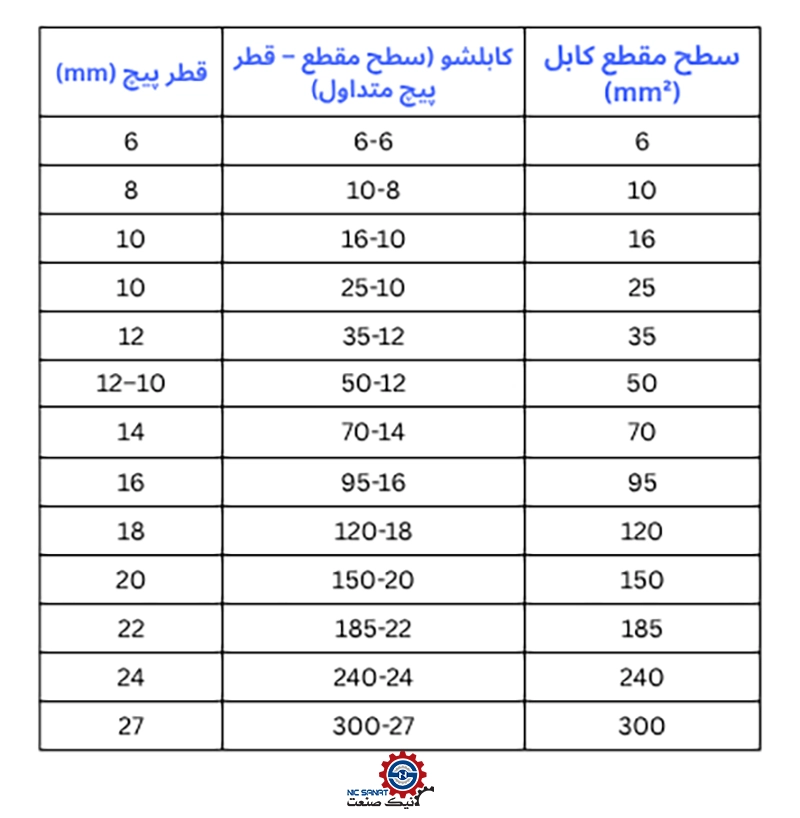 - سایز کابلشو متناسب با سطح مقطع کابل و قطر پیچ