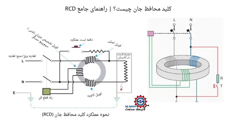 کلید محافظ جان یا RCD/RCCB بر پایه مقایسه جریان فاز و نول عمل میکند. در شرایط عادی، این دو جریان کاملاً برابر هستند، اما هرگونه نشتی—even بسیار کم تعادل را برهم میزند. زمانی که این اختلاف از حد حساسیت کلید بیشتر شود، تجهیز در کسری از ثانیه مدار را قطع میکند. این سازو کار ساده اما فوق العاده مهم، دلیل اصلی توصیه استانداردهای IEC برای استفاده اجباری از RCD در محیطهای خانگی، صنعتی، بیمارستانی و حتی سیستمهای خورشیدی است.