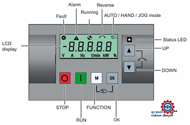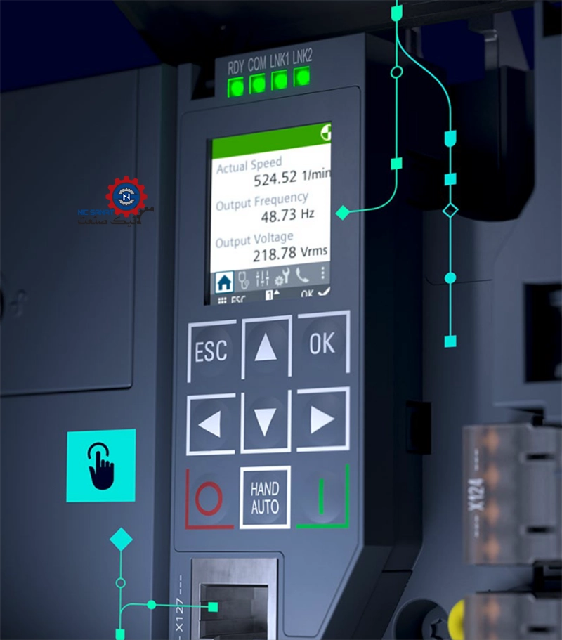 با فشردن دکمههای مشخص و ورود به منوی “Parameter” میتوانید تنظیمات پایه را انجام دهید. - از طریق نرم افزار: STARTER یا SINAMICS Startdrive
